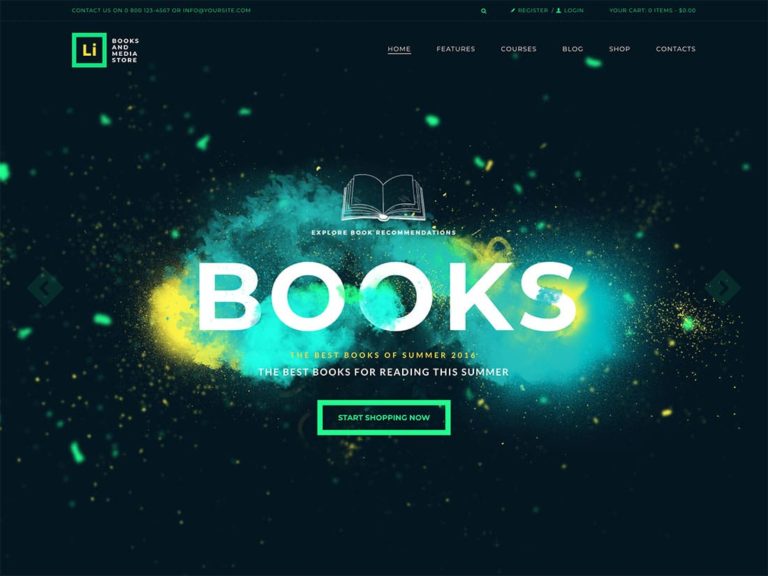Çeşitli şablon seçenekleri sayesinde, bu tema, ister çevrimdışı kitapçınızı tanıtmak ister çevrimiçi satış için kitap listelemeye başlamak isteyin, kitap satan bir dizi web sitesi oluşturmak için kullanılabilir.