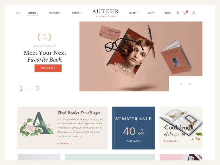 Auteur, çevrimiçi kitap satmak için idealdir, ancak bu tema bundan çok daha fazlasını yapabilir.