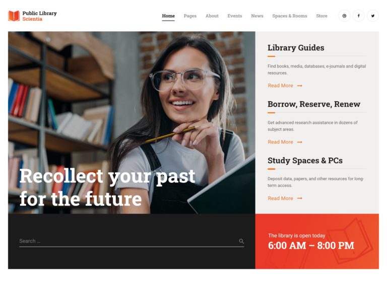 Scientia, bazı çok çekici şablonlara sahip bir kütüphane ve kitapçı WordPress temasıdır.