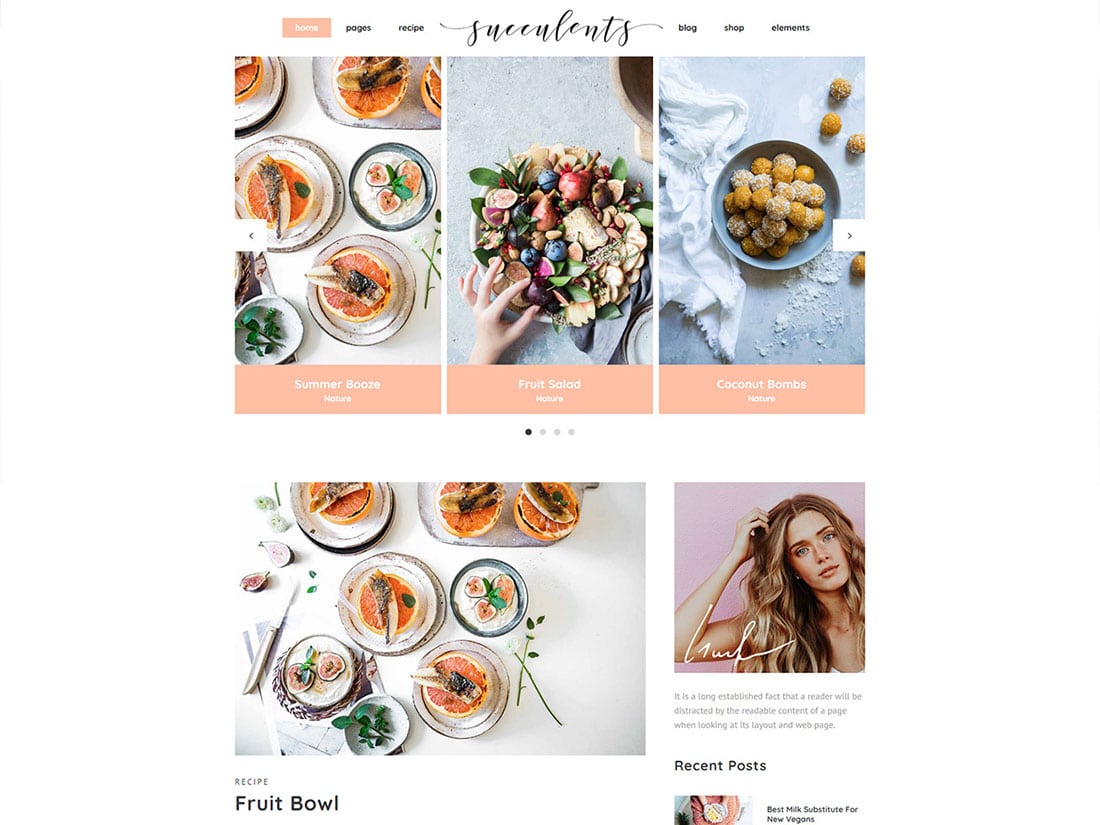 Sulu Meyveler teması, yemek ve yaşam tarzı blogları için en uygun modern ve taze bir temadır.