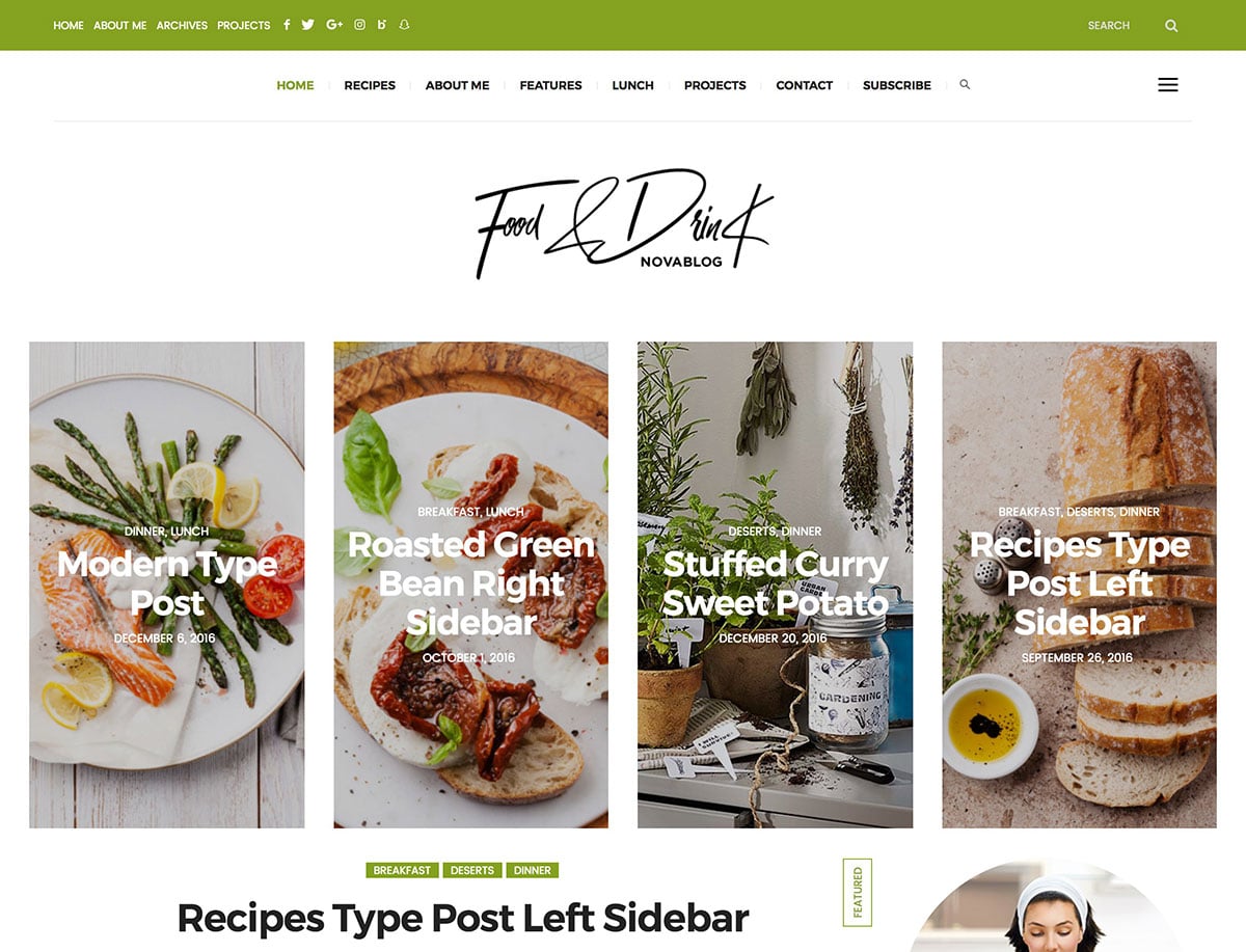 Lahanna teması, oradaki herhangi bir yemek blogcusu için mükemmel olan, WordPress için güzel bir yemek temasıdır.