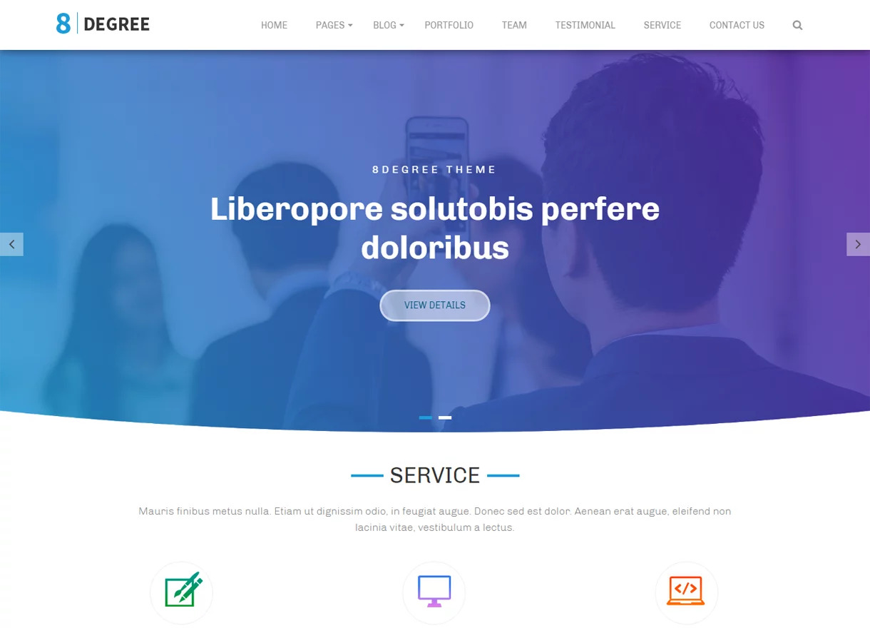 Eight-Degree, portföy, serbest yazar, blog veya yaratıcı web siteleri için mükemmel bir ücretsiz portföy WordPress temasıdır. Bu tema tamamen, kullanıcı dostu özelleştirme seçeneklerine sahip olan ve kullanıcıların kolayca ve hızlı bir şekilde bir web sitesi tasarlamasına olanak tanıyan özelleştirici araçları üzerine kurulmuştur.