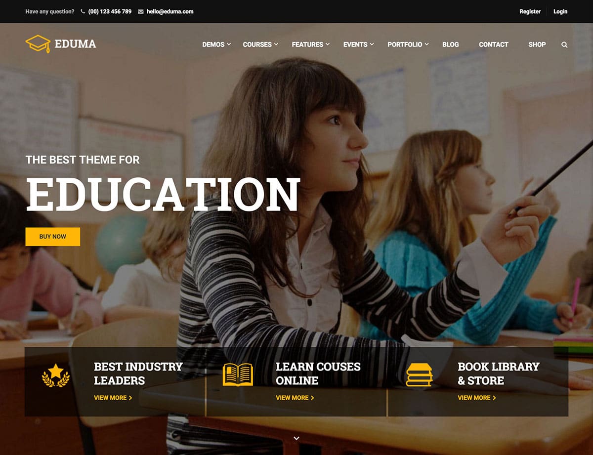 Eduma, 20 web sitesi demosu ile çok popüler bir WordPress eğitim temasıdır.