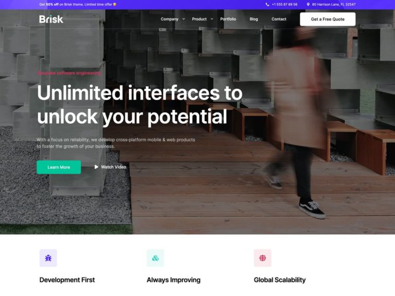Geniş bir demo yelpazesine sahip bir tema arıyorsanız, Brisk mükemmel bir seçimdir. Kullanımı kolay ve son derece özelleştirilebilir, rekabette öne çıkan bir web sitesi oluşturmanız için size birçok yol sunar.