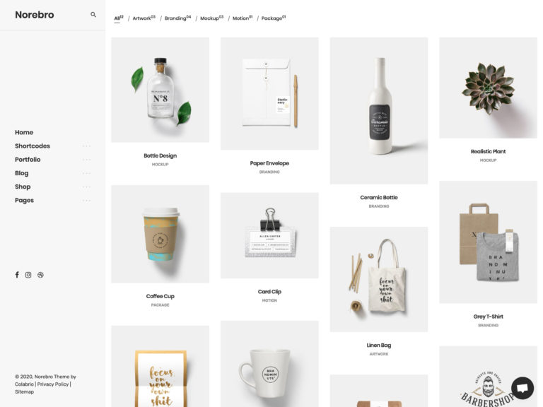 Bu tema, çok çeşitli web sitesi türleri için düzinelerce kullanıma hazır demo ile birlikte gelir. Portföyler, çevrimiçi mağazalar, dijital ajanslar, restoranlar ve daha fazlası için düzenler vardır. Norebro'nun tüm tasarımları minimalisttir ve renk kullanımı seyrektir, bu da yalnızca efekti vurgulamaya yarar.