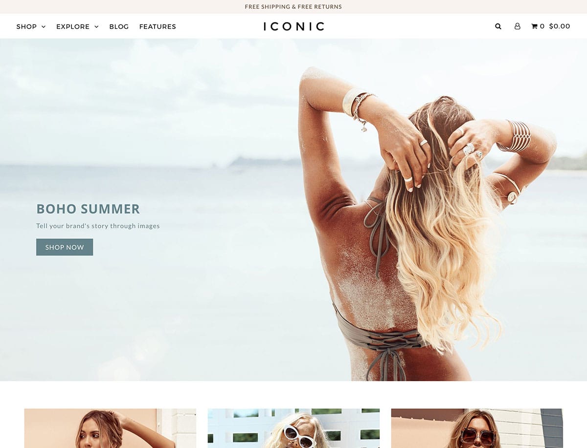 Temanın tam genişlikteki düzenleri, mağazanızın tasarımına dahil etmek istediğiniz fotoğrafları ve diğer görsel içerikleri sergilemesini sağlar. Varsayılan ana sayfa yapılandırması, arka plan görüntüsü olarak tam genişlikte büyük bir fotoğrafı görüntüleme veya sayfaya çok görüntülü bir kaydırıcı ekleme olanağı sağlar. Aslında, Simge paketindeki slayt gösterisi aracı, birden fazla ürünü tek bir yerde görüntülemek için de kullanılabilir.