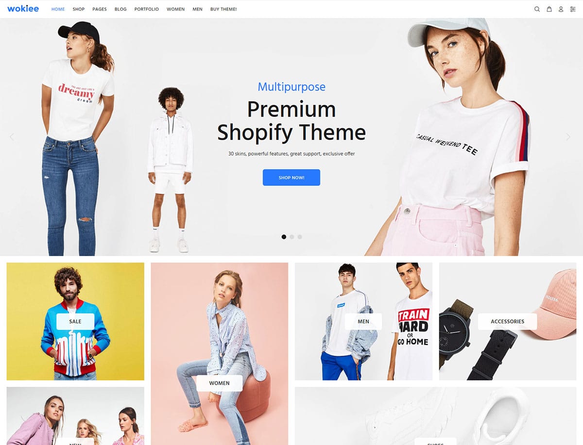 Wokiee, hemen hemen her tür e-ticaret mağazası oluşturmak için oluşturulmuş esnek, çok amaçlı bir Shopify temasıdır. Aralarından seçim yapabileceğiniz 80'den fazla göz alıcı ana sayfa düzeniyle, markanıza uygun bir tane bulma şansınız var.