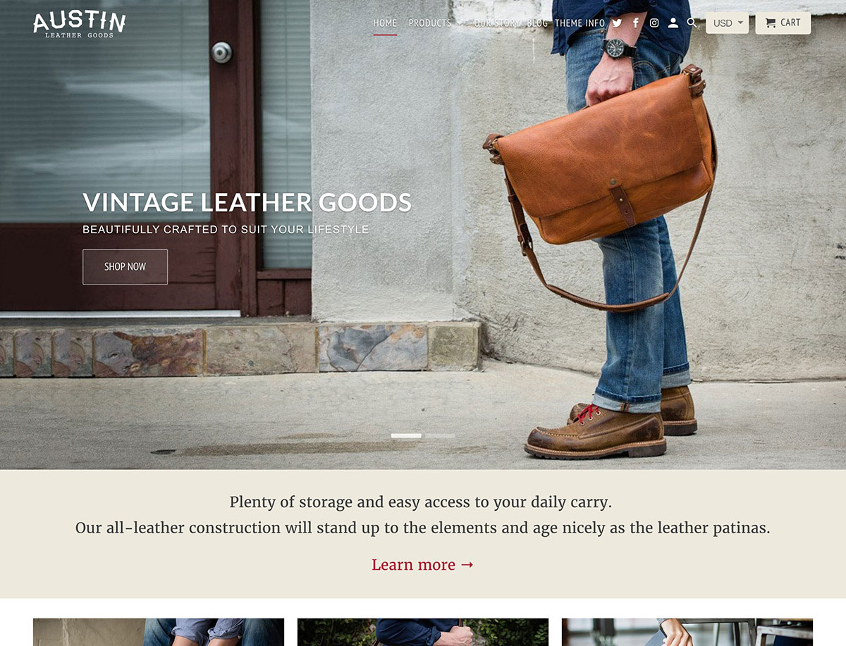 Another great element you can add to your homepage is the featured products grid that will display product images and links from items in your catalog. Your homepage can also easily display the latest content from your Instagram account, giving you a way to share some extra content with your visitors.