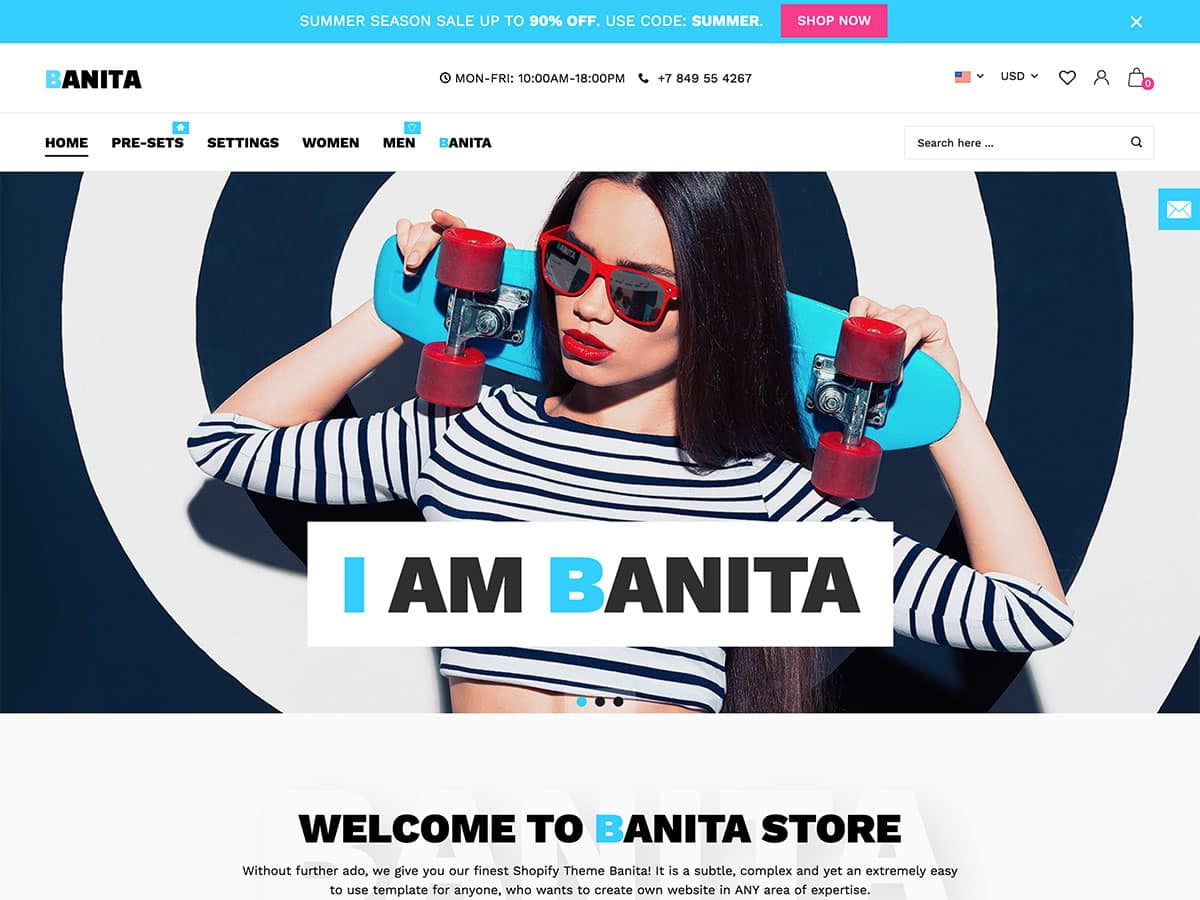 Banita, Shopify ile her türden çevrimiçi mağaza oluşturmak için özelleştirilebilir bir e-ticaret temasıdır.
