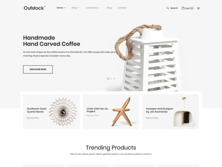 Outstock, çok çeşitli mağazalar için oluşturulmuştur ve e-ticaret markanıza uygun olmasını sağlamak için kolayca özelleştirilebilir.