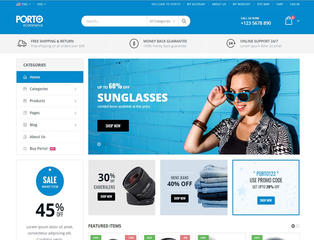 Bu temada birçok iyi e-ticaret özelliği var. Buna, alışveriş yapanların mağazanızda aradıklarını bulmalarını kolaylaştıran canlı bir arama aracı, tekliflerinizin veya ürünlerinizin reklamını yapmak için afişler ve diğer öğeler oluşturmanıza olanak tanıyan promosyon özellikleri ve sizi etkinleştiren mega menüler dahildir. ürün resimleri de dahil olmak üzere açılır menülerinize çok çeşitli öğeler eklemek için.