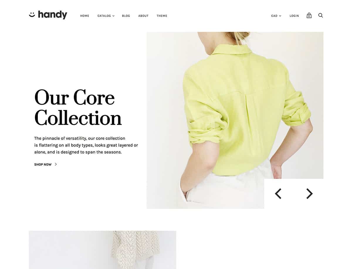 While all the Shopify themes in this collection are mobile-friendly to some degree, Handy takes things one step further with its mobile-first design. Despite being designed specifically for smaller screen devices and mobile eCommerce, Handy doesn't lack any of the great features you'd expect to find in a leading Shopify theme.