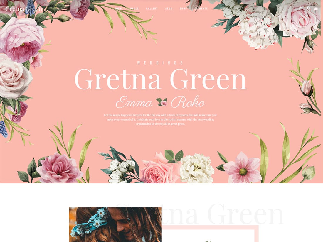 Gretna Green, en çok beğendiğinizi seçip seçebilmeniz için birkaç farklı demo varyasyonu sunan şık bir düğün temasıdır. Aynı zamanda önceden hazırlanmış iç sayfalar da sunar, böylece mekan detayları, resepsiyon, LCV veya misafirlerinizi büyük gün hazırlıklarıyla ilgili gelişmelerden haberdar etmenizi sağlayacak bir blog için sayfalar oluşturmakta sorun yaşamayacaksınız. Ancak çeşitli sayfa stilleri ve çok amaçlı düzenler sayesinde bu tema düğün planlayıcıları tarafından kolayca kullanılabilir.