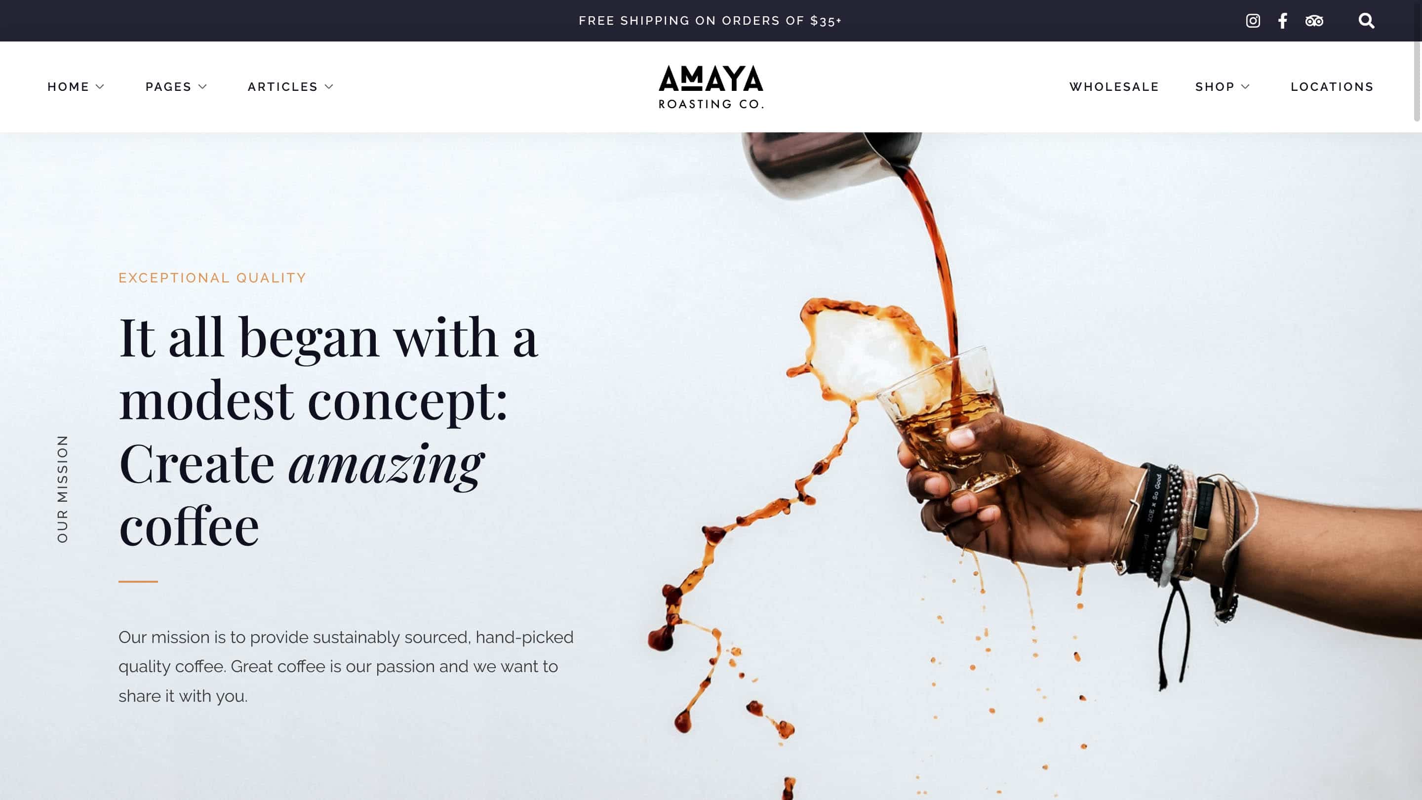 Tüm demolar şık bir ana sayfa ve menünüzü, konum bilgilerinizi, iletişim bilgilerinizi ve daha fazlasını yayınlamak için düzenler içerir. Amaya ayrıca tamamen e-ticarete hazırdır ve size doğrudan web sitenizden ürün satma seçeneği sunar. Ziyaretçilerinize kahve çekirdekleri ve kahve ile ilgili aksesuarlar gibi ürünleri satın alma veya arkadaşlarınıza hediye çekleri satın alma fırsatı vermek istiyorsanız, Amaya bunu mümkün kılmak için tüm şablonlara sahiptir.