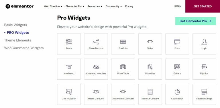 Bu widget'lar, resim galerileri, düğmeler ve atlıkarıncalar gibi temel öğeleri ve harekete geçirici mesajlar, PayPal düğmeleri ve fiyatlandırma tabloları gibi daha gelişmiş seçenekleri içerir. Çok daha fazlası var, bu yüzden Elementor web sitesindeki listeye göz atmayı unutmayın.