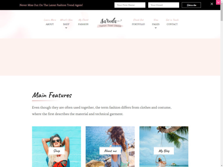 Blossom Fashion WordPress teması, başka bir harika kadınsı seçimdir. Önyüklemek için modern ve şık minimal bir stile sahip. Bu temayı moda web siteleri, yemek tarifi blogları, seyahat siteleri, güzellik siteleri, portföyler ve daha fazlası için kullanabilirsiniz. Bu temanın renklerini ve tipografisini ihtiyaçlarınıza göre özelleştirebilir ve ek özellikler getirmek için widget'lar ekleyebilirsiniz. Bu widget'lardan bazıları, reklamları görüntülemek için bir tane ve haber bülteni kayıt formunuzu sergilemek için kullanabileceğiniz bir tane daha içerir.