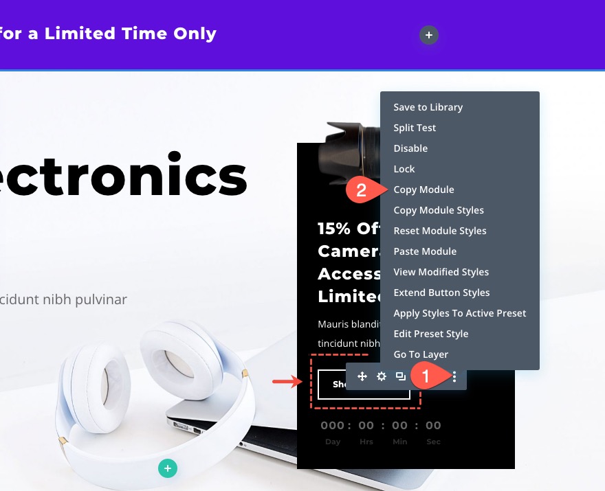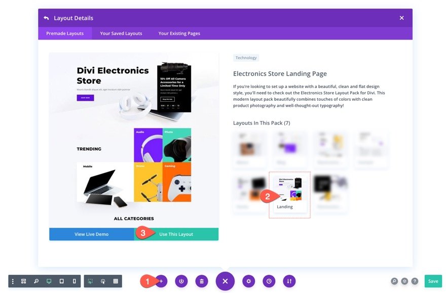 Süreci hızlandırmak için Divi Builder'da bulunan Divi's Electronics Store Layout Pack'ten Electronics Store Landing Page Layout'u kullanacağız.
