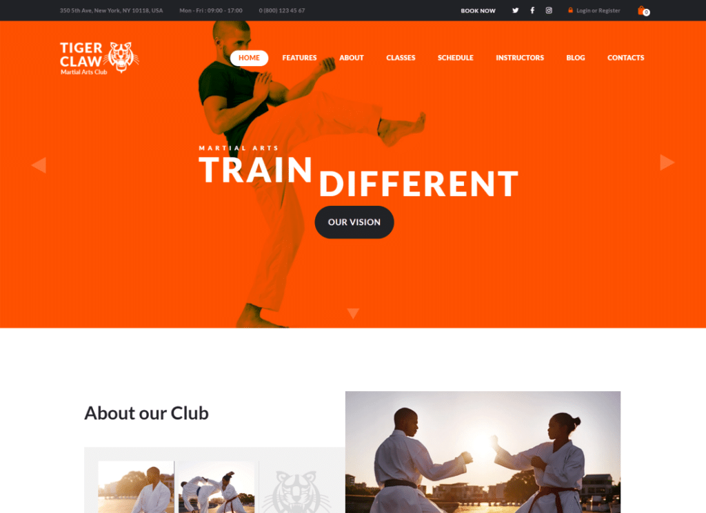 Daha fazla bilgi / Demoyu İndirTiger Claw – Dövüş Sanatları Okulu ve Fitness Merkezi WordPress Teması