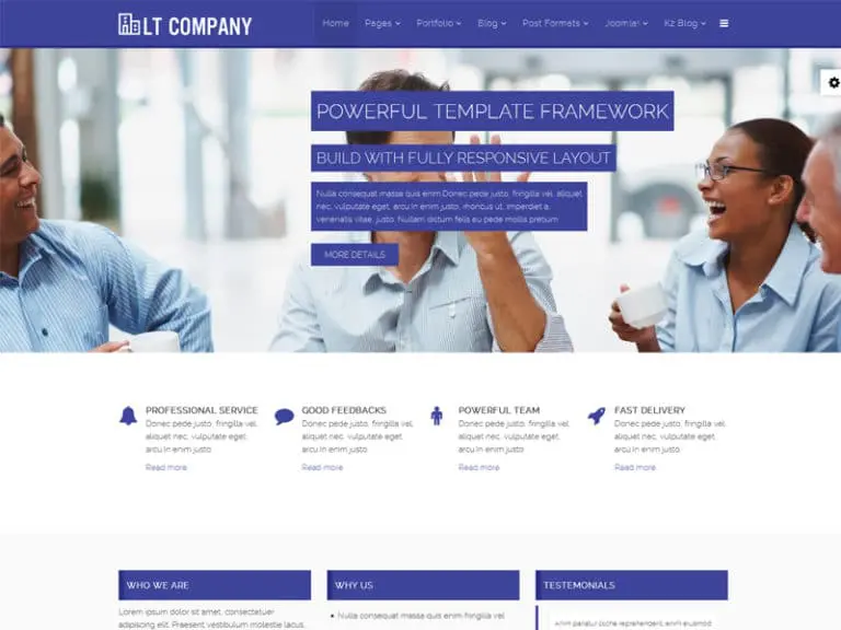 LT Company, kutulu ve tam genişlikte düzeni içeren esnek bir ana sayfa ile birlikte gelir. Kulağa ilginç geliyor mu? Bitmedi. Bu, şirket ve ürünleri veya hizmetleri hakkında bilgi sağlamak için profesyonel bir şablondur. Tamamen duyarlı düzene sahip şirket şablonu için oluşturulur (mobil cihazlar için destek).