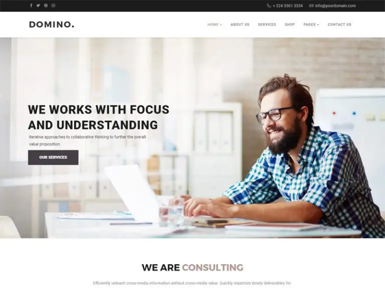 Domino sadece temiz ve moderndir, aynı zamanda herhangi bir platform arayüzü için de duyarlıdır. Ayrıca Domino, Finans, Kurumsal, Ajans, Fotoğraf Stüdyosu, Serbest Çalışanlar gibi kurumsal web siteleri için en uygun olanıdır. Üstelik değiştirip tamamen kendinize çevirmeniz için hazırlanmış içerikler, fotoğraflar da yer alıyor. Tarayıcılar arası uyumluluk.