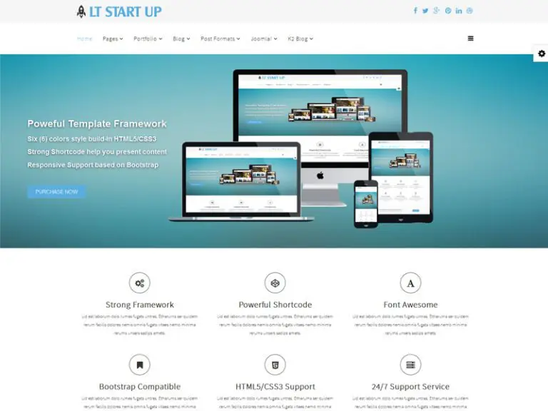 LT Start Up, küçük işletme web sitesi, finansal danışmanlık web sitesi veya ticaret şirketi için hedefler. Önyükleme, sınırsız modül konumu, güçlü kısa kodlar, içerik sunmanıza yardımcı olan %100 duyarlı düzen (mobil cihazlar için destek) ile güçlü bir çerçeve üzerine kuruludur ve HTML5 ve CSS3'te yerleşik 4 renk stili ile birlikte gelir. Bununla birlikte, sayfanın zor görevlerini oluşturmakla ilgili bir karmaşa değil, gerçekten özelleştirilebilir, sürükle bırak araçlarına ve renk ayarlarına sahip.
