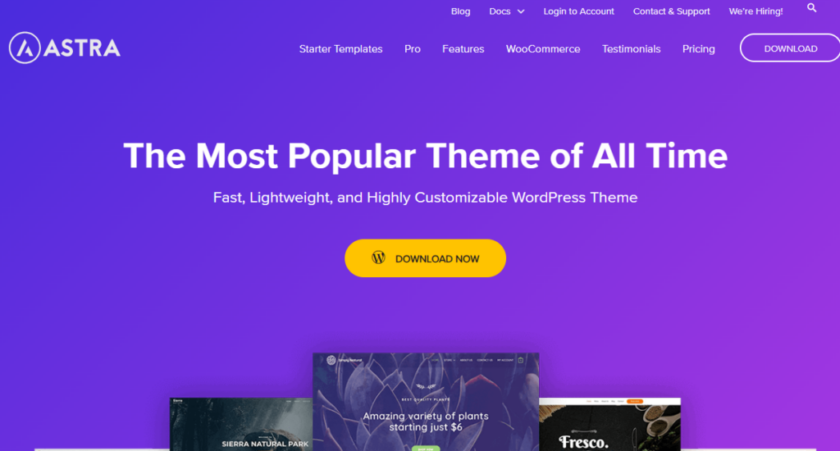 Astra, esnek özelleştirme seçeneklerine ve tam WooCommerce uyumluluğuna sahip basit bir WordPress temasıdır. İçerik widget'larının kolayca sürüklenip bırakılabileceği çok sayıda widget'a hazır yer içeren gelişmiş bir ana sayfa tasarımına sahiptir. Kullanıcıların, yaygın olarak kullanılan herhangi bir WordPress sayfa oluşturucu eklentisini kullanarak benzersiz WordPress sayfa düzenleri tasarlamasına olanak tanır.