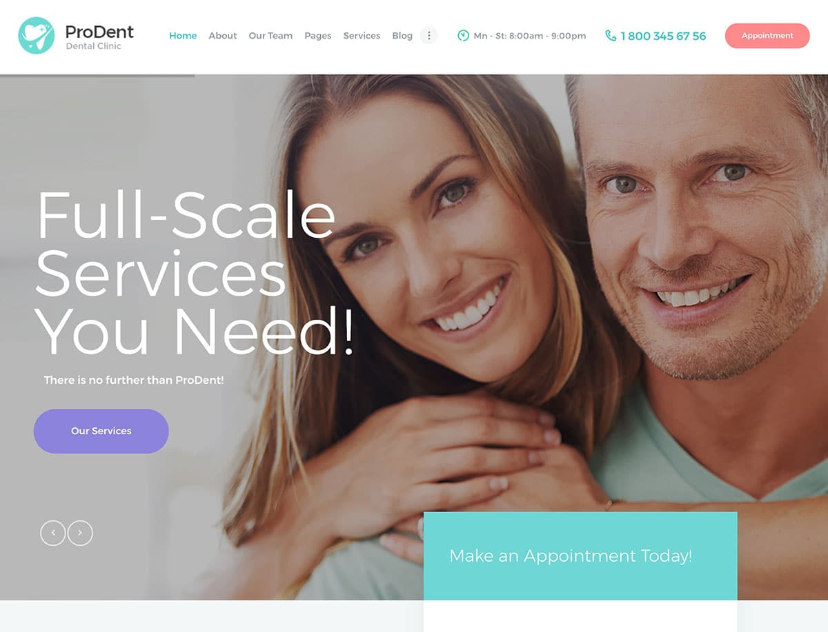 ProDent, WordPress ile diş kliniğiniz için tamamen modern bir web sitesi oluşturmanıza yardımcı olacaktır.
