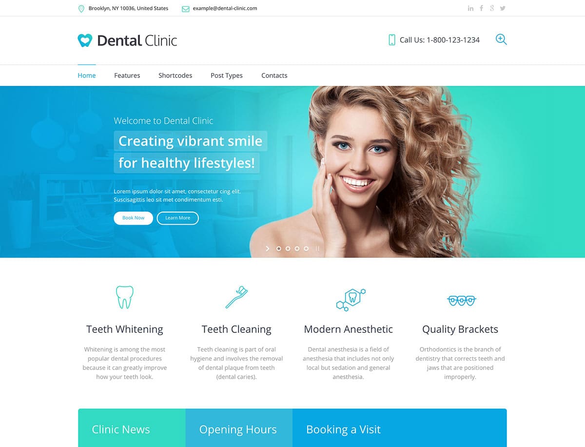 Diş Kliniği, diş hekimi işletmeleri ve uygulamaları dahil olmak üzere çeşitli tıbbi web siteleri için iyi çalışır.
