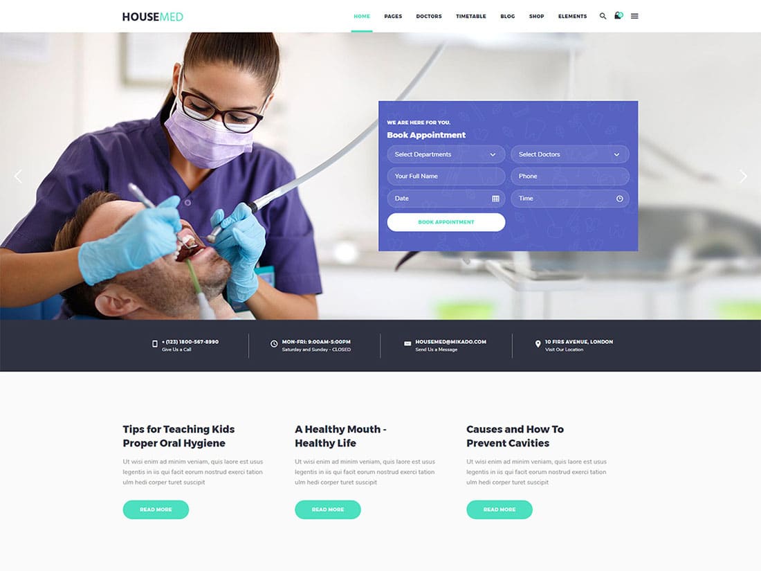 HouseMed, diş hekimi web siteleri oluşturmak için iyi çalışan bir sağlık ve tıp temasıdır.