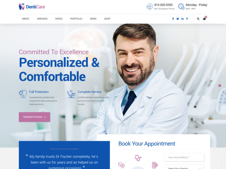DentiCare, özellikle dental web siteleri oluşturmak için tasarlanmış bir WordPress temasıdır.