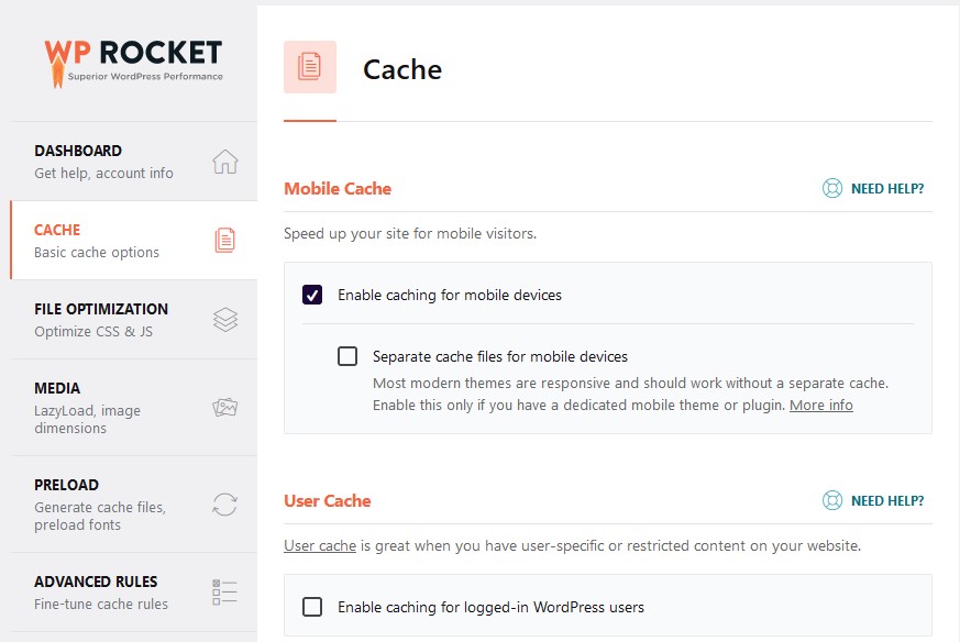 Hem WP-Optimize hem de WP Rocket sağlam önbellekleme desteğine sahiptir.