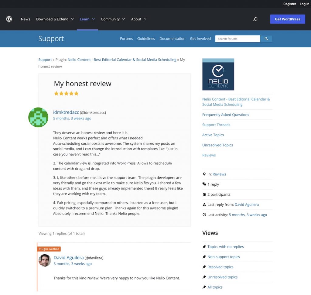 例如,在我们的案例中,我们提供 WordPress 插件,您可以在 WordPress.org 目录中找到这些插件。 我们尝试回答支持论坛中有关我们任何服务的任何问题。