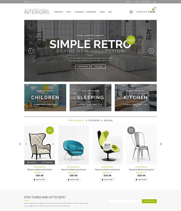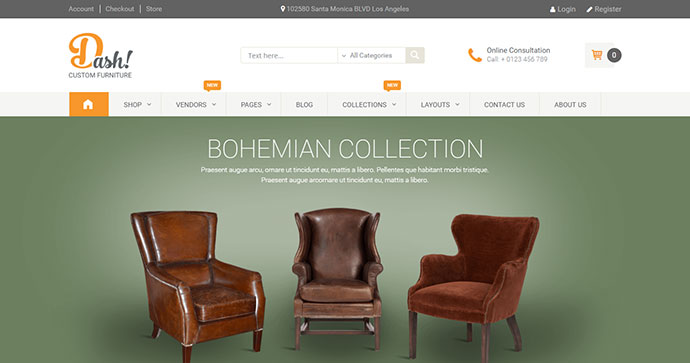它带有 9 种令人惊叹的预定义主页布局,为您的在线商店创造了很多选择。 尤其是 Home Lookbook 和 Home Sidebar —— 最酷和最新的设计,这让您的在线演示家具店美丽而引人注目。 此外,我们相信您不会对megamenu、商店、博客演示的布局感到失望。