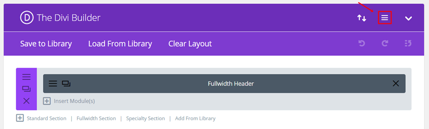 首先打开或创建要添加子菜单设计的页面。 现在,单击 Divi 构建器右上角的以下按钮: