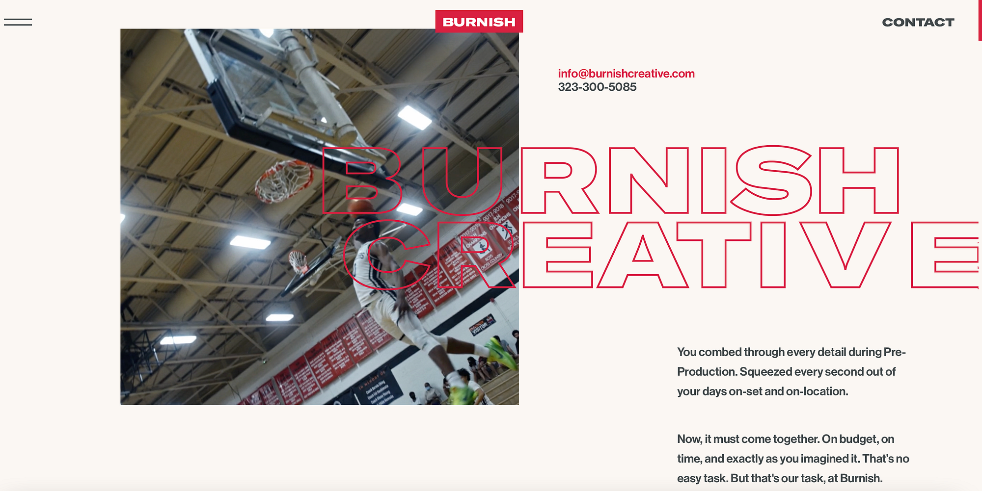 Burnish Creative 是另一个不断流动的网站,它使用置换、不对称和动画来确定 90 年代的网站美学。 例如,当您滚动时,排版会出现在页面上,而当您移向该部分时,排版会变得更窄。