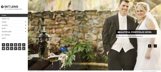 SKT Lens Pro是这些演员 WordPress 主题之一,您可以将其用于不同的需求,如投资组合网站、婚纱摄影网站、数字代理或建筑网站。 它带有一个颜色选择器,并且支持多语言和翻译。