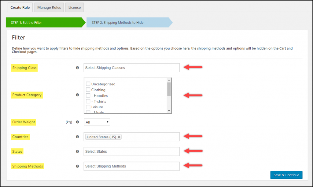 使用此插件,您可以创建无限的运输方式。 您可以为特定产品、类别、国家以及购物车小计创建运输方式。 不仅如此,您还可以使用运输类别配置自定义费率。