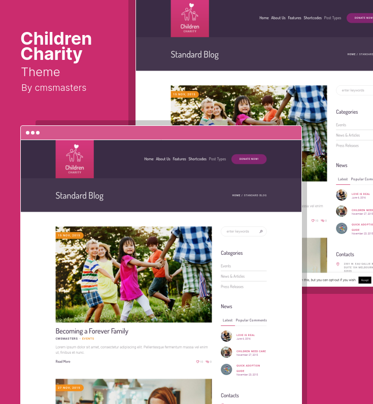 慈善组织通常需要特殊功能,例如用于筹款、收集捐款和展示与活动相关的展示的捐赠功能。 儿童慈善主题配备了一个完全定制的捐赠插件,完全集成到主题中。