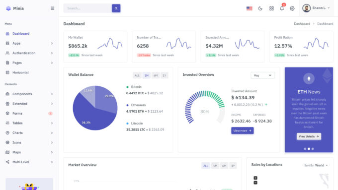 为了帮助您入门,Color Admin 提供了六个主要的仪表板演示,您可以使用它们来启动您的项目。 他们的设计功能丰富,这绝对是一个管理工具包,会吸引那些需要显示大量数据和内容的人。