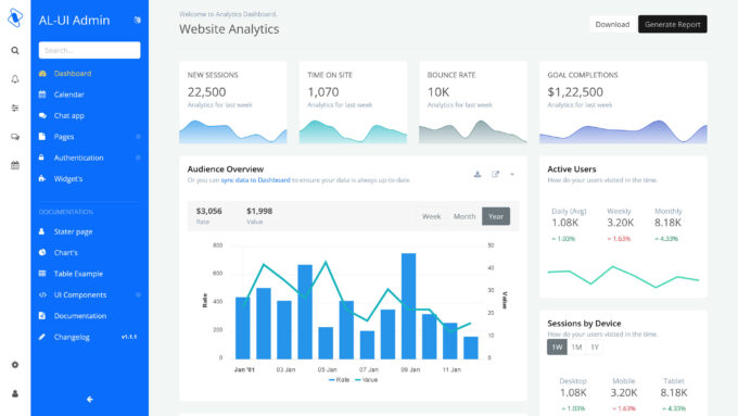 Ample Admin 当然拥有为您的项目创建完美仪表板所需的一切,但请务必查看演示以查看设计风格是否符合您的偏好。