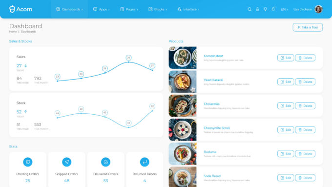 此集合中的工具包含多个 UI 工具包,确保您可以将所有最重要的元素添加到仪表板和管理页面。 一些选项还包括几个预定义的配色方案,以加快开发过程。 您需要的一切都可能在这些模板包中找到。