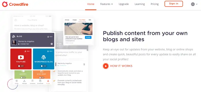 Crowdfire 是 Buffer 的免费替代品。 它使您可以按照预定义的时间表共享和管理内容。