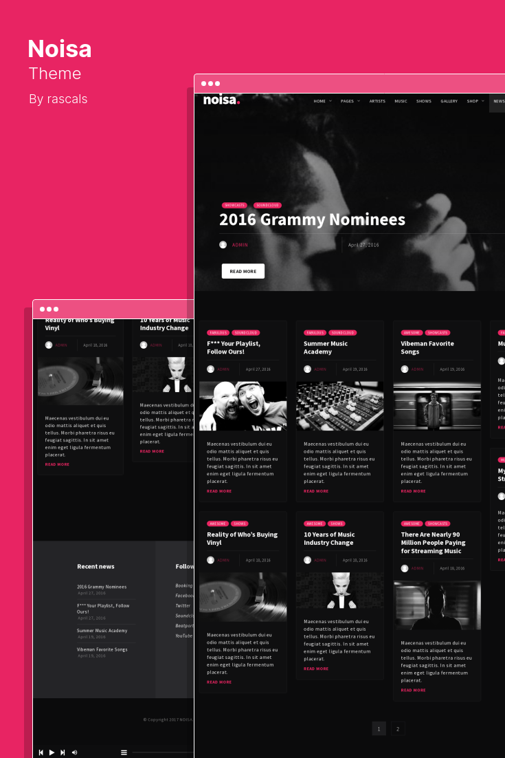 Recond 是一个录音室和音乐乐队 WordPress 主题,专为 DJ、声音设计、说唱歌手和乐器网站设计。