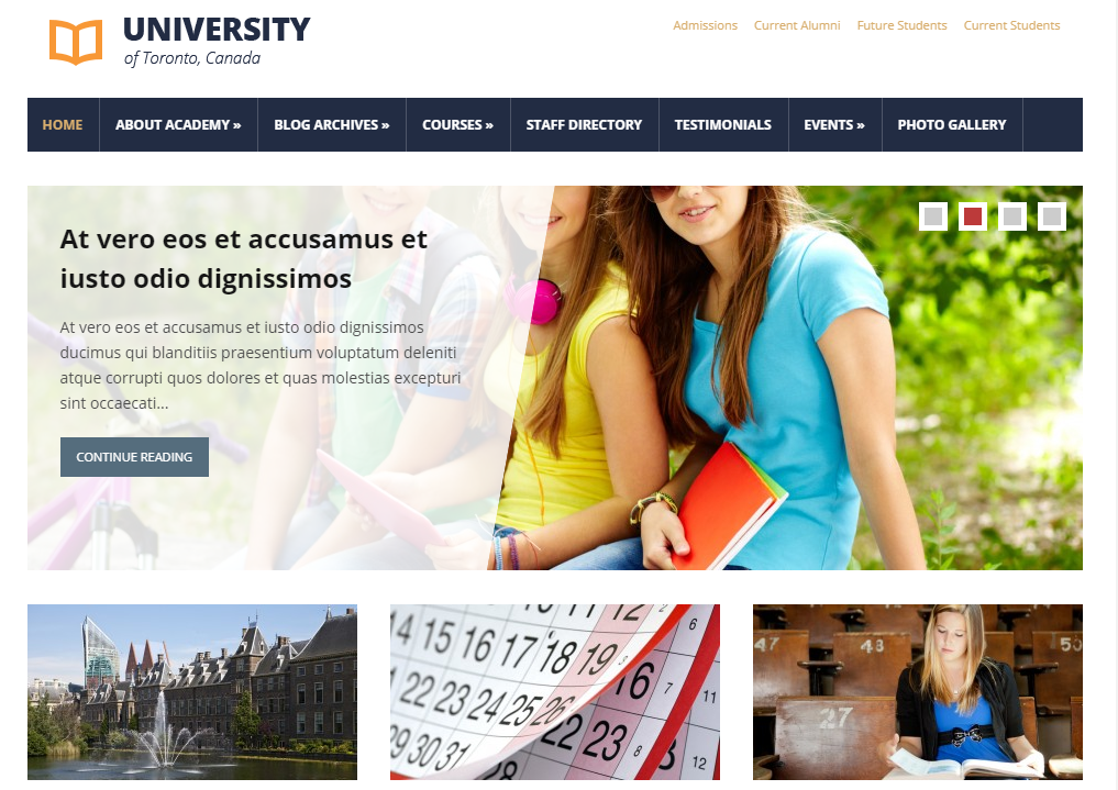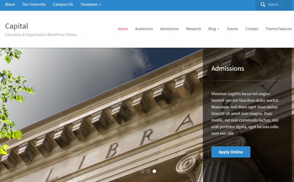 作为在线学习平台的一部分,Capital 主题具有可发布的活动日历和全角幻灯片。