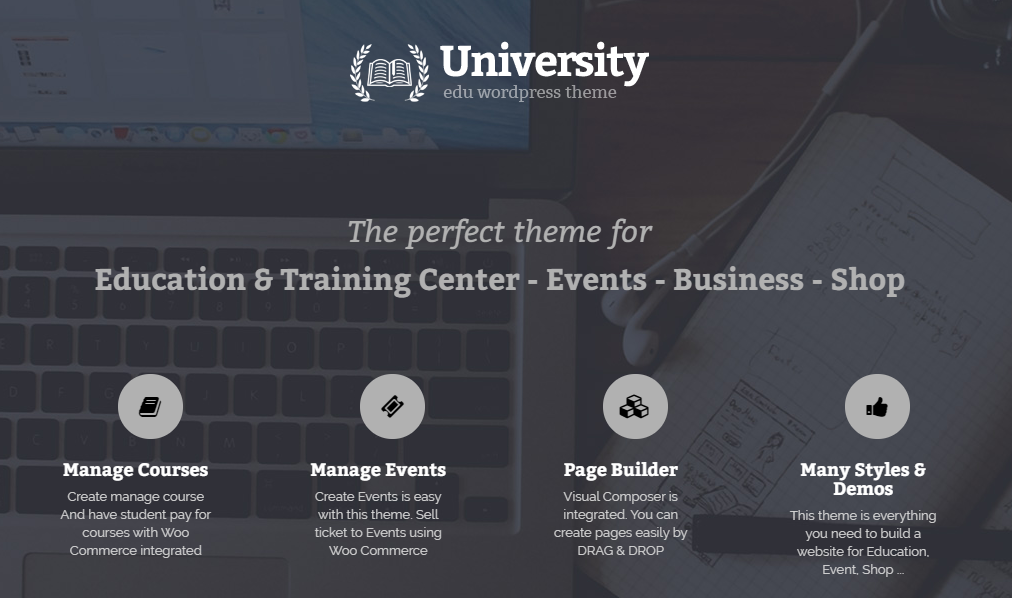 大学主题通过 WordPress 设计提供课程管理、事件管理、滑块管理和滑块革命插件标准。