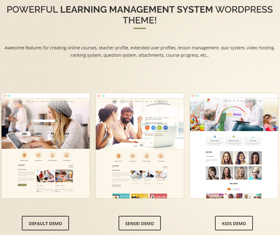 该主题有 7 个主页变体、创建免费和付费课程的选项、13 个支付网关、通过 WooCommerce 销售课程的选项、交互式讨论板以及测验上传和下载选项。