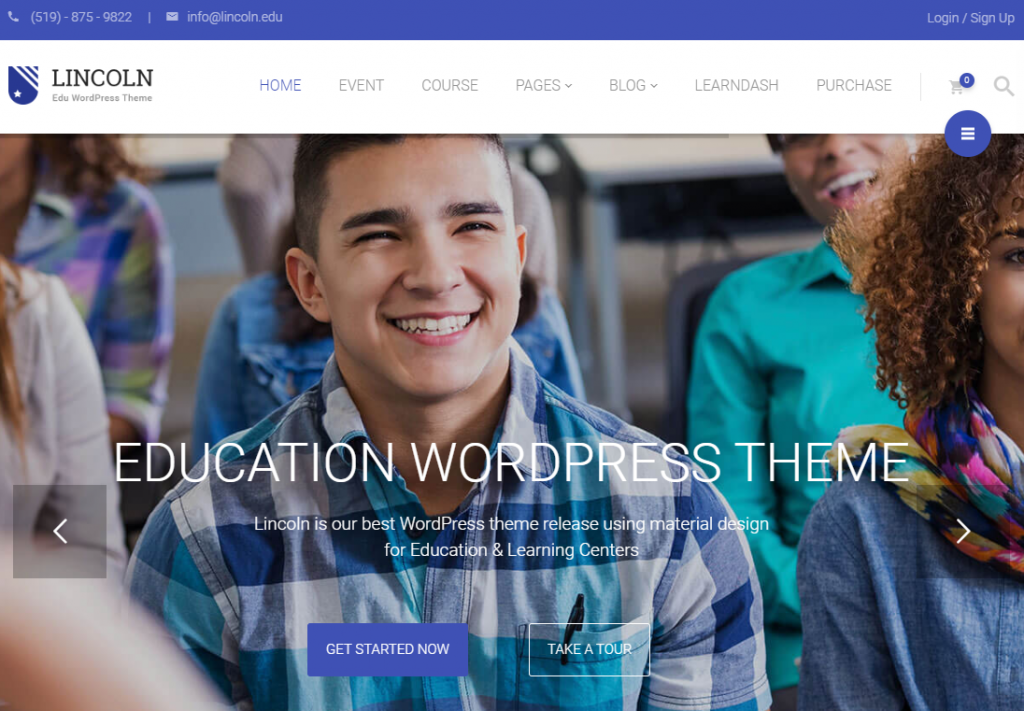 林肯主题伴随着视觉作曲工具、旋转滑块、视差滚动选项和可发布的事件日历。 除了其他用户友好的功能外,您只需拖动即可上传您的教学大纲、阅读材料、测验和成绩。