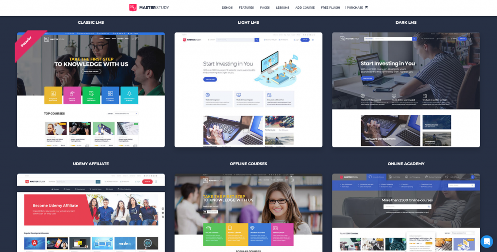 Masterstudy 有 12 个独特的电子学习平台模板:
