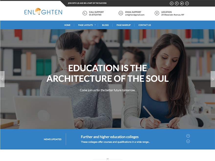 这个现代、响应迅速的主题具有 12 种颜色样式。 专为教育机构打造,具有动态主页构建器。