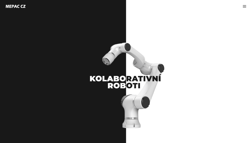 本网站由 Tomaš Orliczek 提交。 屏幕在页面下方一直分为两种颜色,左侧为黑色,右侧为白色。 英雄部分在中央显示一个 6 轴机器人,产品名称位于图像上方。 出现在黑色面的文字为白色,出现在白色面的文字为黑色。 下一部分在中心显示另一个机器人,两侧有简介,中间有文字模块,用于描述。 另一个机器人挂在这个机器人上(GLaDOS 风格)并通向带有社交媒体图标的页脚,当单击汉堡包图标时,这些图标也会出现在菜单顶部。 产品页面显示每个机器人都有交替的黑白背景。 产品页面显示机器人的一侧带有控制器,另一侧显示规格。